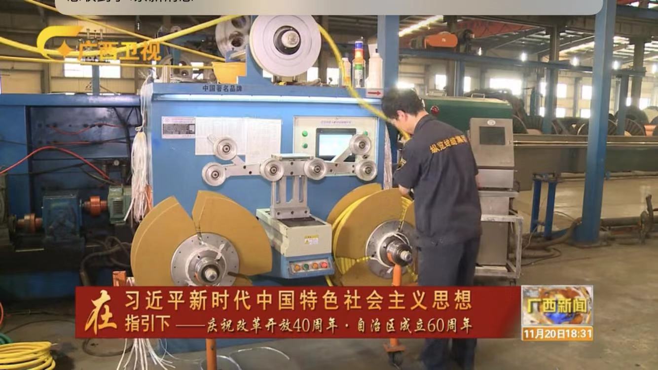 “習近平新時代中國特色社會主義思想指引下——慶祝改革開放40周年?自治區(qū)成立60周年”欄目,報道了近年來,在廣西大力實施質(zhì)量強桂戰(zhàn)略和商標品牌戰(zhàn)略下,廣西涌現(xiàn)出的一大批推動廣西經(jīng)濟發(fā)展的工業(yè)企業(yè),廣西縱覽線纜集團有限公司(以下簡稱“縱覽線纜”)