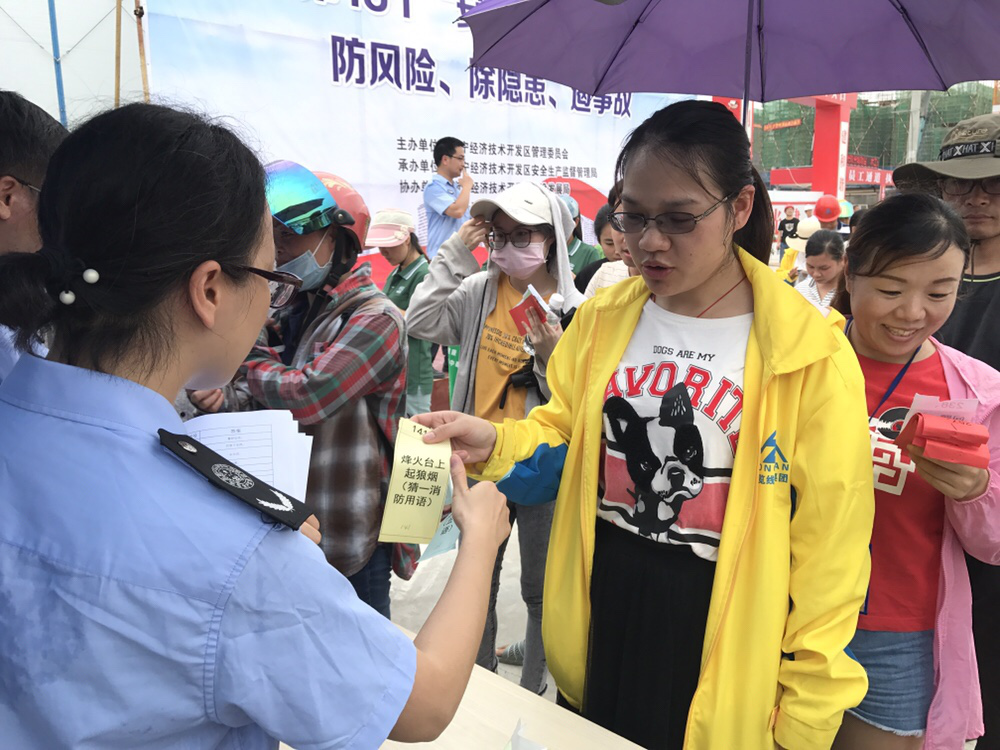 南寧經(jīng)濟(jì)開(kāi)發(fā)區(qū)“安全生產(chǎn)活動(dòng)月”正式啟動(dòng) 2019年6月14日下午15時(shí)15分,南寧市經(jīng)濟(jì)開(kāi)發(fā)區(qū)“安全生產(chǎn)活動(dòng)月”啟動(dòng)儀式在南寧市經(jīng)濟(jì)開(kāi)發(fā)區(qū)金凱路玖譽(yù)城舉辦。 此次活動(dòng)由南寧經(jīng)濟(jì)開(kāi)發(fā)區(qū)管理委員會(huì)主辦,南寧市經(jīng)濟(jì)開(kāi)發(fā)區(qū)安全生產(chǎn)監(jiān)督管理局承辦,南寧經(jīng)濟(jì)開(kāi)發(fā)區(qū)建設(shè)發(fā)展局、龍光工程建設(shè)有限公司協(xié)辦。 廣西縱覽線纜集團(tuán)有限公司組織員工參加本次啟動(dòng)儀式,啟動(dòng)儀式結(jié)束后現(xiàn)場(chǎng)進(jìn)行了安全知識(shí)燈謎活動(dòng),縱覽集團(tuán)各部門員工積極踴躍參與并贏得獎(jiǎng)品。 領(lǐng)取安全燈謎 回答燈謎問(wèn)題
