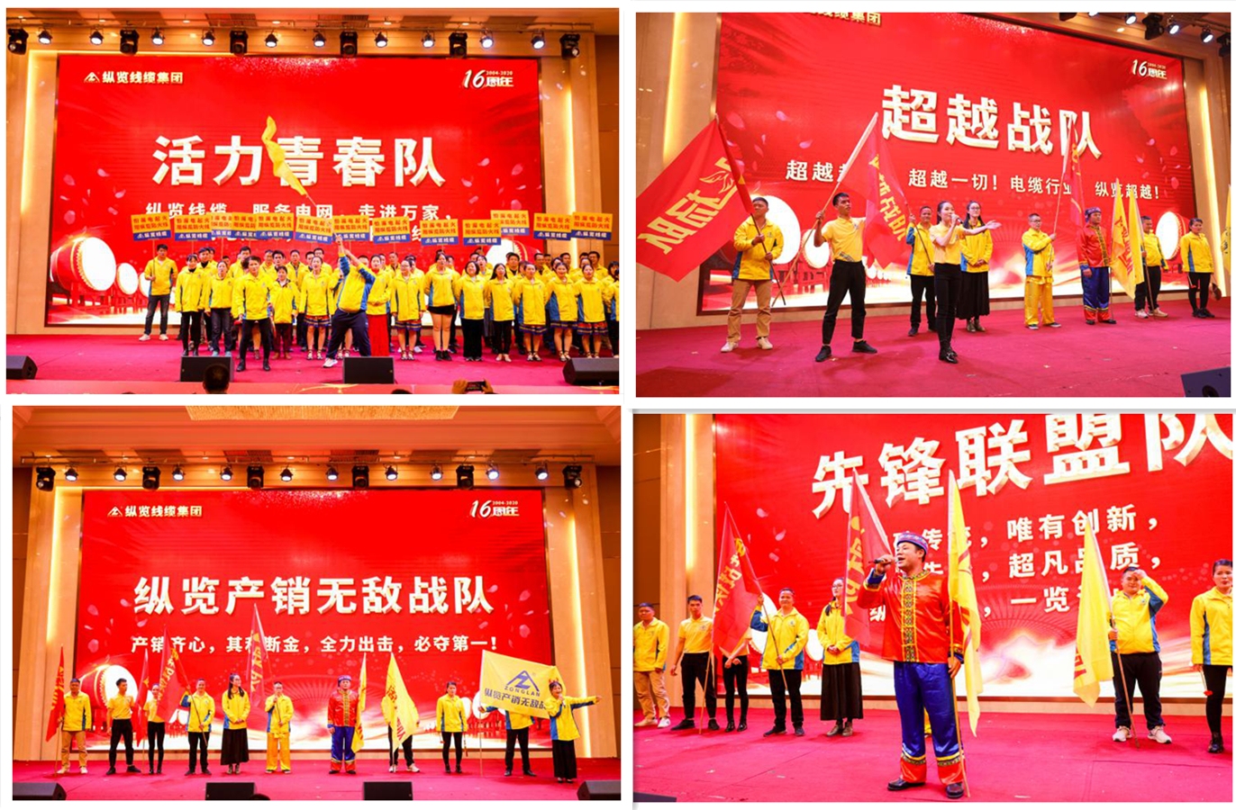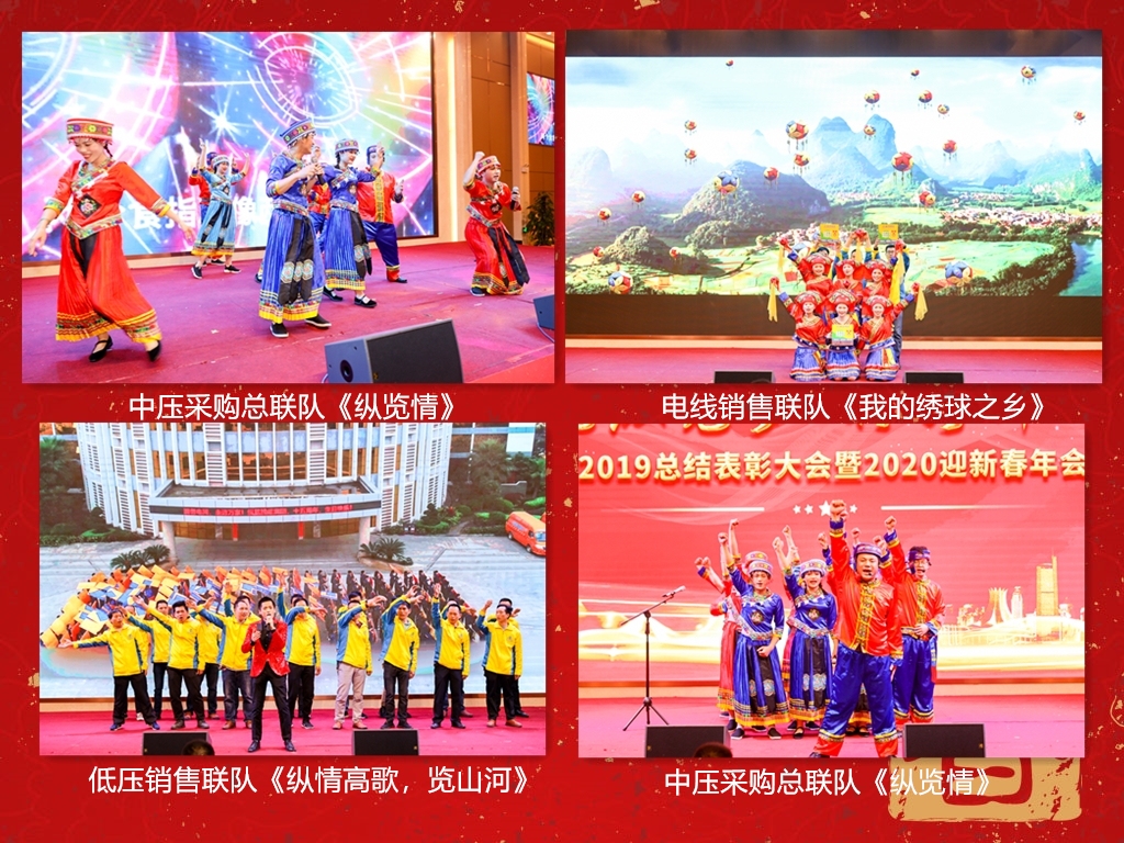 2020年1月13日,縱覽線纜集團(tuán)2019年總結(jié)表彰大會(huì)暨2020年迎新春年會(huì)在華南城維也納金色大廳隆重舉行。集團(tuán)董事長(zhǎng)陳秀銳先生、總裁唐崇健先生、監(jiān)事會(huì)主席林曉敏女士、副董事長(zhǎng)徐洪虎先生、常務(wù)副總裁彭斌先生、總工程師劉小祥先生、董事長(zhǎng)助理兼財(cái)務(wù)總監(jiān)陳楊先生、董事長(zhǎng)助理兼銷售副總監(jiān)韋艷秋女士、總裁助理兼人力行政總監(jiān)張彩菊女士及工廠總監(jiān)楊興恒先生出席了本次年會(huì),集團(tuán)領(lǐng)導(dǎo)與縱覽的各位嘉賓們、縱覽伙伴們歡聚一堂,共襄盛會(huì)! 走過(guò)往昔,奮斗的汗水剛剛拭去,回首征途,勝利的笑容不斷蔓延。時(shí)間,如白駒過(guò)隙,2019,縱覽人還來(lái)不及擦凈拼博的汗水,便迎來(lái)了鮮活嶄新的2020。新的一年,新的起點(diǎn)。縱覽人將不忘初心,聯(lián)合廣大負(fù)責(zé)任的經(jīng)銷商、裝飾公司、水電工師傅們,讓專供南方電網(wǎng)的縱覽產(chǎn)品走遍八桂大地,走進(jìn)億萬(wàn)家庭。 14:30分,2019年總結(jié)表彰大會(huì)準(zhǔn)時(shí)開(kāi)始,首先對(duì)過(guò)去一年先進(jìn)的個(gè)人和團(tuán)隊(duì)進(jìn)行表彰。每一位優(yōu)秀的縱覽人,他們不怕苦、不怕累,就怕任務(wù)完不成;他們勤勤懇懇、默默付出,有著強(qiáng)烈的奉獻(xiàn)精神;他們時(shí)刻以公司利益為先,舍小家為大家,全身心地投入工作。 表彰大會(huì)過(guò)后,一支熱情洋溢的開(kāi)場(chǎng)舞正式拉開(kāi)了方隊(duì)競(jìng)演的序幕。各個(gè)方隊(duì)精彩的亮相,一呼百應(yīng)、鏗鏘有力的氣勢(shì)看得讓人熱血沸騰,展現(xiàn)了縱覽團(tuán)隊(duì)的氣勢(shì)、創(chuàng)意和不掉隊(duì)、不服輸?shù)膱F(tuán)隊(duì)精神。 開(kāi)場(chǎng)舞《我相信》 各方隊(duì)進(jìn)行口號(hào)展示