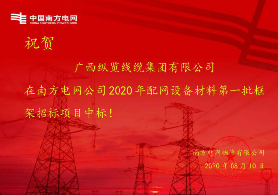 近日,中國南方電網(wǎng)公司公布了2020年配網(wǎng)設(shè)備材料第一批框架項目招標結(jié)果,縱覽線纜集團取得優(yōu)異的成績,合計中標金額約達4億元!這充分證明了南方電網(wǎng)對縱覽線纜集團綜合實力的認可,也是縱覽線纜集團十六年全心服務(wù)南方電網(wǎng),堅持“做最好的線纜”的成果體現(xiàn)! 縱覽集團是國家CNAS認可的檢測中心,省級認定的企業(yè)技術(shù)中心和自治區(qū)級研發(fā)中心;擁有RXX改性聚氯乙烯絕緣改性聚氯乙烯護套軟電纜、0.6/1kV環(huán)保型無鹵低煙阻燃電力電纜、額定電壓0.6/1kV交聯(lián)聚乙烯絕緣室內(nèi)外安裝電線、新型中壓耐火電力電纜、鋁合金中低壓電力電纜、智能防火家裝線系列產(chǎn)品等20多項新產(chǎn)品。研發(fā)出的高導(dǎo)電耐熱鋁合金導(dǎo)線已列入2018年南寧市科學(xué)研究與技術(shù)開發(fā)計劃重點研發(fā)項目。 縱覽集團是廣西最大的電纜生產(chǎn)基地和中高壓導(dǎo)線生產(chǎn)基地。獲得了“中國電線電纜行業(yè)最具競爭力百強企業(yè)”、“全國工業(yè)品牌培育示范企業(yè)”、“2019年中國機械500強”、“廣西電線電纜行業(yè)龍頭企業(yè)”等殊榮。 做好產(chǎn)品回報客戶,做好企業(yè)回報社會!縱覽人不忘初心,堅持做負責(zé)任的人,做最好的線纜! |