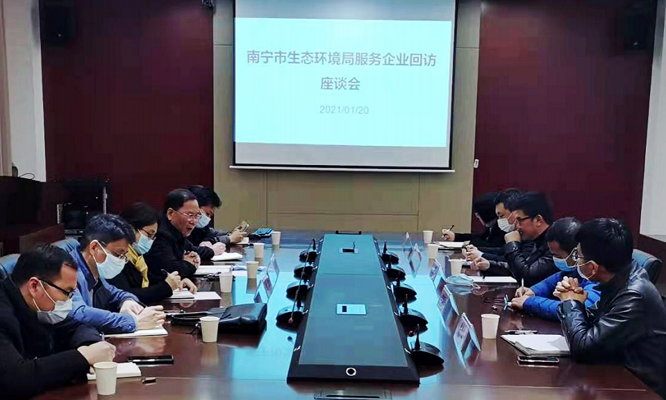 2021年1月20日,南寧市生態(tài)環(huán)境局黨組書記、局長韋好鵬,總工程師陳莉一行到南寧市經(jīng)濟技術(shù)開發(fā)區(qū)回訪縱覽集團(tuán)等南寧市首批環(huán)保重點服務(wù)單位。