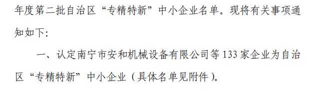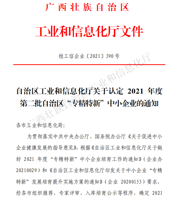 日前,廣西工信廳發(fā)布了2021年度第二批自治區(qū)“專精特新”企業(yè)認(rèn)定名單,我司榜上有名。 我司自成立以來,高度重視產(chǎn)品開發(fā)、技術(shù)創(chuàng)新、科研投入、人才建設(shè)工作,為公司持續(xù)健康、高質(zhì)量發(fā)展奠定了堅實基礎(chǔ)。已建設(shè)成為集電線電纜上下游產(chǎn)品研發(fā)、生產(chǎn)、銷售為一體的國家級高新技術(shù)企業(yè),廣西最大的電纜生產(chǎn)基地和中高壓導(dǎo)線生產(chǎn)基地,廣西智能制造示范企業(yè),廣西機械工業(yè)行業(yè)10強企業(yè)、廣西技術(shù)創(chuàng)新示范企業(yè)。在廣西線纜行業(yè)中,是唯一榮獲“全國工業(yè)品牌培育示范企業(yè)”,唯一建立有國家CNSA認(rèn)可實驗室的企業(yè),唯一榮獲“國家級綠色工廠”的企業(yè),唯一榮獲“自治區(qū)政府質(zhì)量獎和市級政府質(zhì)量獎”的企業(yè),唯一全系列產(chǎn)品獲得進(jìn)入”廣西名優(yōu)工業(yè)產(chǎn)品”名錄的企業(yè);已連續(xù)兩年進(jìn)入廣西企業(yè)100強,連續(xù)三年進(jìn)入廣西民營企業(yè)100強。 |