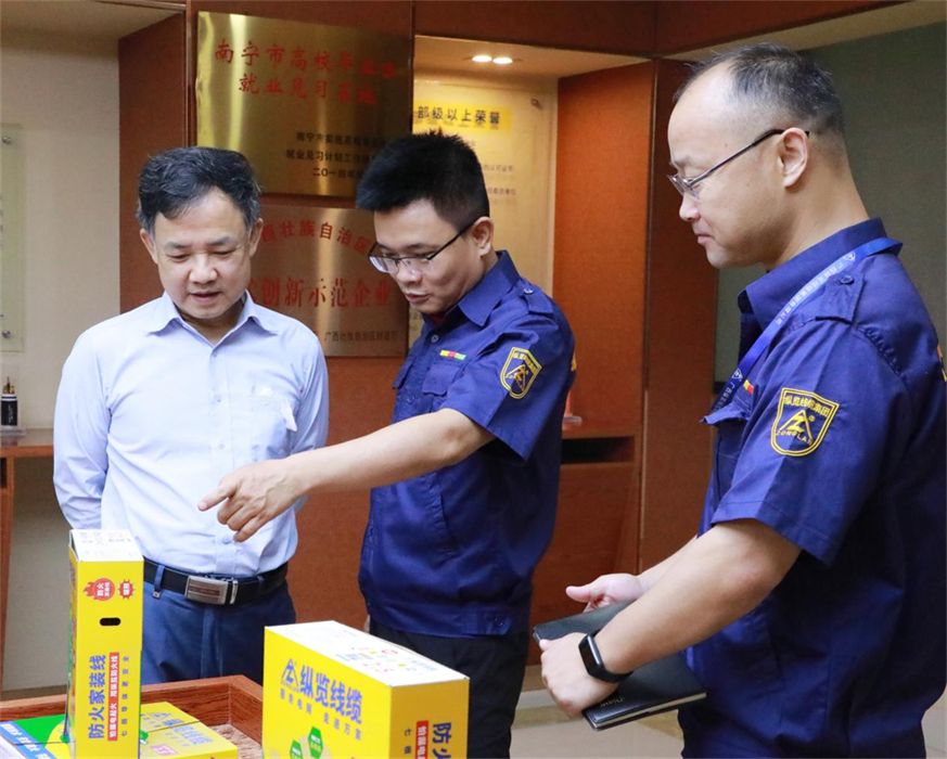 5月25日上午,廣西工商聯(lián)副主席葉俊茂帶領(lǐng)工作組就企業(yè)風(fēng)險(xiǎn)防控到我司調(diào)研。集團(tuán)公司董事長(zhǎng)陳秀銳陪同并向調(diào)研組匯報(bào)了我司當(dāng)前生產(chǎn)經(jīng)營(yíng)和有關(guān)風(fēng)險(xiǎn)防控工作情況。 葉俊茂對(duì)我司高度重視企業(yè)風(fēng)險(xiǎn)防控工作,并結(jié)合企業(yè)實(shí)際采取有關(guān)生產(chǎn)經(jīng)營(yíng)、合規(guī)經(jīng)營(yíng)、財(cái)務(wù)杠桿等風(fēng)險(xiǎn)防控措施,以及企業(yè)科研平臺(tái)建設(shè)、人才隊(duì)伍建設(shè)和員工勞動(dòng)保護(hù)、權(quán)益保障等工作給予充分肯定和積極評(píng)價(jià)。 葉俊茂表示,縱覽線纜集團(tuán)作為廣西企業(yè)100強(qiáng)、廣西民營(yíng)企業(yè)100強(qiáng),在行業(yè)領(lǐng)域發(fā)展上形成了特色優(yōu)勢(shì),成為龍頭企業(yè),自身風(fēng)險(xiǎn)防范、管控意識(shí)強(qiáng),面對(duì)疫情所造成當(dāng)前嚴(yán)峻經(jīng)濟(jì)形勢(shì),能完全依靠自身力量,克服困難,企業(yè)經(jīng)營(yíng)發(fā)展呈現(xiàn)出令人振奮的局面,充分體現(xiàn)了縱覽線纜集團(tuán)的內(nèi)在實(shí)力。 期間,葉俊茂一行還參觀了我司智能制造監(jiān)造系統(tǒng)、榮譽(yù)展廳和檢測(cè)中心國(guó)家CNAS認(rèn)可實(shí)驗(yàn)室,深入了解我司生產(chǎn)經(jīng)營(yíng)、產(chǎn)品試驗(yàn)檢測(cè)、企業(yè)文化建設(shè)等方面情況。廣西工商聯(lián)經(jīng)濟(jì)部副部長(zhǎng)洪青松,廣西區(qū)建行駐自治區(qū)工商聯(lián)金融指導(dǎo)員鄧學(xué)莉,南寧市委統(tǒng)戰(zhàn)部副部長(zhǎng)、工商聯(lián)黨組書記張獻(xiàn)輝,市工商聯(lián)辦公室副主任劉迪陪同調(diào)研。公司領(lǐng)導(dǎo)劉小祥、陳楊、張彩菊、吳培軍參加了調(diào)研活動(dòng)。 |