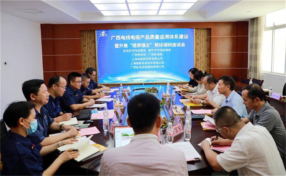 9月2日上午,廣西市場監(jiān)管局質(zhì)量監(jiān)管處處長劉鐵輝就廣西電線電纜產(chǎn)品質(zhì)量追溯體系建設(shè)暨開展“提質(zhì)強企”活動率工作組到我司進(jìn)行調(diào)研指導(dǎo),我司董事長陳秀銳全程陪同。 陳秀銳董事長對劉鐵輝處長一行表示熱烈的歡迎,并對廣西各級市場監(jiān)管部門、技術(shù)機構(gòu)對我司質(zhì)量檢驗、產(chǎn)品追溯、生產(chǎn)管理等質(zhì)量提升工作給予的幫助和支持表示感謝。 公司總工程師劉小祥向調(diào)研組詳細(xì)介紹了公司經(jīng)營發(fā)展、智能工廠建設(shè)、產(chǎn)品質(zhì)量溯源建設(shè)情況。調(diào)研組有關(guān)技術(shù)專家介紹了全國質(zhì)量追溯體系建設(shè)成果、質(zhì)量追溯建設(shè)方案和線纜企業(yè)數(shù)字化轉(zhuǎn)型等相關(guān)情況,并對我司產(chǎn)品質(zhì)量追溯體系建設(shè)工作給予點評、提出有關(guān)改進(jìn)優(yōu)化的意見建議。 劉鐵輝處長對我司質(zhì)量管理工作和產(chǎn)品質(zhì)量溯源體系建設(shè)工作給予充分肯定,對產(chǎn)品溯源連接電工系統(tǒng)解決客戶問題和偽劣產(chǎn)品舉報獎勵舉措表示高度贊賞。他表示,縱覽線纜集團履行企業(yè)主體責(zé)任、勇于擔(dān)當(dāng)?shù)木唧w表現(xiàn),是廣西電線電纜行業(yè)高質(zhì)量發(fā)展的標(biāo)桿和典范。 座談會前,調(diào)研組一行參觀了我司與國家電網(wǎng)EIP電工裝備智慧物聯(lián)平臺和南方電網(wǎng)供應(yīng)鏈服務(wù)平臺互聯(lián)的MES智能監(jiān)造系統(tǒng)、榮譽展廳和廣西行業(yè)唯一CNAS實驗室,深入電線車間了解自動化生產(chǎn)和產(chǎn)品掃碼溯源。 廣西市監(jiān)局質(zhì)量監(jiān)管處四級調(diào)研員黃飛雪,南寧市市場監(jiān)管局副局長段壽紅、產(chǎn)品質(zhì)量監(jiān)督科科長金濤,廣西質(zhì)檢院黨委委員、業(yè)務(wù)負(fù)責(zé)人周壽勇,機電所所長謝汝峰,廣西標(biāo)準(zhǔn)院編碼應(yīng)用研究所長何榕,上海電纜研究所有限公司、上海纜新信息技術(shù)有限公司技術(shù)專家,我司領(lǐng)導(dǎo)陳楊、吳培軍、黎永豪以及IT信息部、市場部相關(guān)負(fù)責(zé)人參加座談會。 |