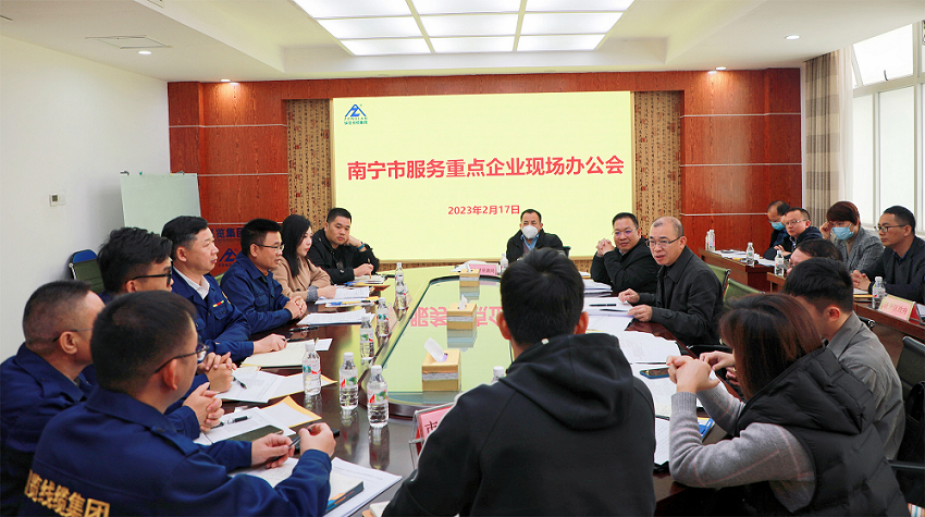 2月17日,南寧市政府副秘書長(zhǎng)梁明志率領(lǐng)南寧市市監(jiān)局、發(fā)改委、工信局、住建局、自然資源局等政府部門組成的工作專班到縱覽集團(tuán)召開南寧市服務(wù)重點(diǎn)企業(yè)現(xiàn)場(chǎng)辦公會(huì)。 會(huì)議聽取了陳秀銳董事長(zhǎng)有關(guān)縱覽集團(tuán)在生產(chǎn)經(jīng)營(yíng)、服務(wù)重大工程項(xiàng)目以及企業(yè)進(jìn)一步融入強(qiáng)首府戰(zhàn)略等方面遇到的問題困難情況匯報(bào),專班各成員單位根據(jù)部門職能職責(zé)在會(huì)上給予答疑解惑,針對(duì)性的提出解決有關(guān)問題困難的辦法和思路。公司領(lǐng)導(dǎo)吳培軍、陳楊、陳思行及市場(chǎng)副總監(jiān)蘇宏發(fā)參加會(huì)議。 |