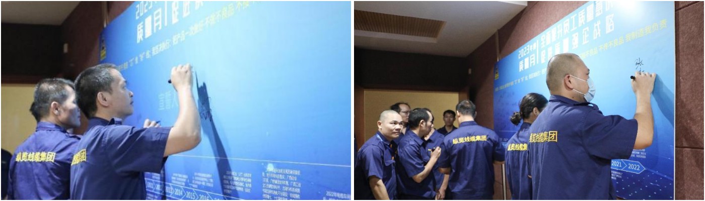 隨著第46個全國“質(zhì)量月”到來,為深入貫徹落實黨中央、國務(wù)院關(guān)于建設(shè)質(zhì)量強國的重大決策部署,響應(yīng)國家市場監(jiān)督管理總局關(guān)于開展2023年全國“質(zhì)量月”號召。9月1日,縱覽線纜集團舉行了以“全面提升員工質(zhì)量意識 促進質(zhì)量強企戰(zhàn)略”為主題的質(zhì)量月活動啟動儀式。集團董事長陳秀銳出席會議并動員講話,質(zhì)量月活動組委會組長劉小祥,副組長吳培軍、黎永豪,各中心分管領(lǐng)導(dǎo)、員工骨干等80人參加會議。 會議開始前,與會人員積極自發(fā)參與質(zhì)量承諾簽名儀式,在寫有“全面提升員工質(zhì)量意識,促進質(zhì)量強企戰(zhàn)略”的簽名墻上簽名,是與會人員對“我生產(chǎn),我負責”責任文化的莊嚴承諾。 質(zhì)量月活動組委會組長劉小祥向大家強調(diào)質(zhì)量月對企業(yè)的重要意義以及如何開展全員質(zhì)量意識提升的講話;質(zhì)量月活動組委會執(zhí)行組長、質(zhì)量部經(jīng)理周軍宣讀了《關(guān)于開展2023年“質(zhì)量月”活動的通知》,并對“質(zhì)量月”產(chǎn)品質(zhì)量分享會、質(zhì)量管理知識競賽和技能競賽等活動方案作講解說明。 陳秀銳董事長在作動員講話時強調(diào),“質(zhì)量是做出來的,而非管出來的”。他要求全體縱覽人都要有質(zhì)量紅線意識,質(zhì)量即縱覽立身之本、發(fā)展之基,更關(guān)乎消費者的生命、企業(yè)的生命,是為實現(xiàn)縱覽高質(zhì)量發(fā)展的基礎(chǔ)保障。他指出,當今行業(yè)內(nèi)產(chǎn)品質(zhì)量良莠不齊,縱覽作為廣西線纜行業(yè)的領(lǐng)跑者,要利用好長期以來服務(wù)電網(wǎng)的質(zhì)量優(yōu)勢、服務(wù)優(yōu)勢;以“質(zhì)量月”活動為契機,持續(xù)提高全員質(zhì)量意識、提升員工專業(yè)技能水平、立好質(zhì)量管理標桿,必須將質(zhì)量工作作為長期的基礎(chǔ)性工作認認真真地抓實抓細、一步一個腳印地穩(wěn)步推進。 最后,全體成員莊嚴宣誓,活動領(lǐng)導(dǎo)小組與參會人員合影。 |