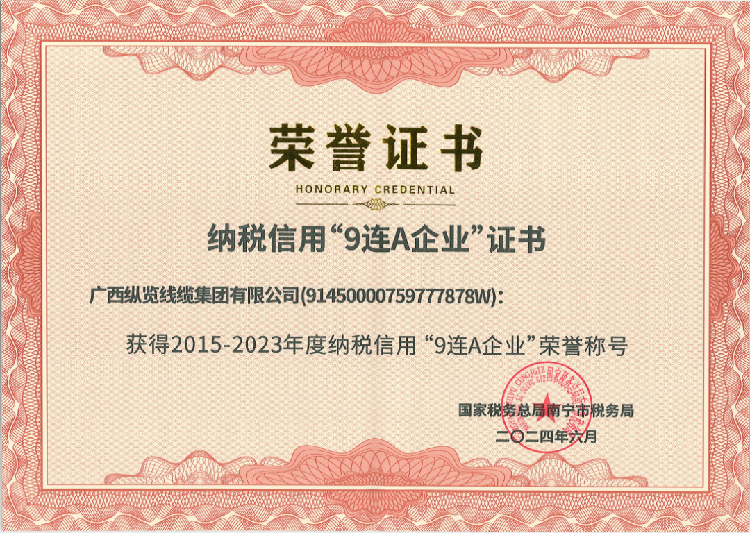 近日,經(jīng)國(guó)家稅務(wù)總局南寧稅務(wù)局評(píng)定,廣西縱覽線纜集團(tuán)榮獲“2015-2023年度納稅信用“9連A”企業(yè)榮譽(yù)稱號(hào)”,至今已連續(xù)九年獲得此項(xiàng)榮譽(yù),這不僅是對(duì)集團(tuán)長(zhǎng)期以來(lái)堅(jiān)持誠(chéng)信經(jīng)營(yíng)、積極履行社會(huì)責(zé)任的高度肯定,更是稅務(wù)機(jī)關(guān)對(duì)我們依法納稅、誠(chéng)信納稅的高度贊譽(yù)。 以誠(chéng)信為基,以創(chuàng)新為翼。展望未來(lái),縱覽線纜集團(tuán)將不忘初心,持續(xù)深化對(duì)客戶和社會(huì)的服務(wù),積極創(chuàng)新,響應(yīng)國(guó)家稅收政策號(hào)召,不斷發(fā)揮納稅信用A級(jí)企業(yè)的引領(lǐng)作用,繼續(xù)書寫誠(chéng)信經(jīng)營(yíng)的輝煌篇章 |