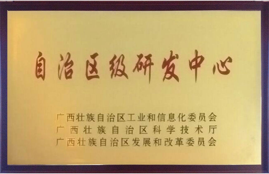廣西壯族自治區(qū)工業(yè)和信息化委員會、廣西壯族自治區(qū)科學技術廳、廣西壯族自治區(qū)發(fā)展和改革委員會頒發(fā)的自治區(qū)級研發(fā)中心
